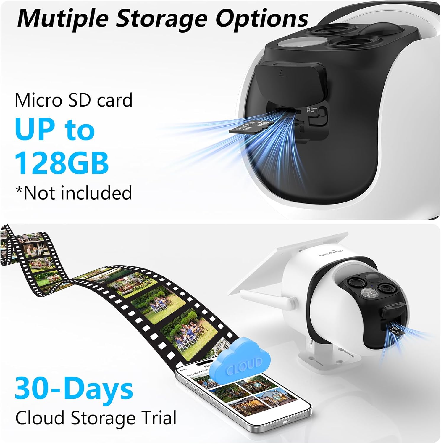 Local/Cloud Storage & Works with Alexa: This outdoor camera supports up to 128GB of SD card storage (not included) to record every important moment, such as package deliveries & suspicious activity. Optional cloud storage is also available for automatic backup of important videos to prevent loss. This wireless cameras for home security works with Alexa assistant, you can view real-time footage instantly using voice commands. Day or night, this solar-powered camera keeps your home safe.