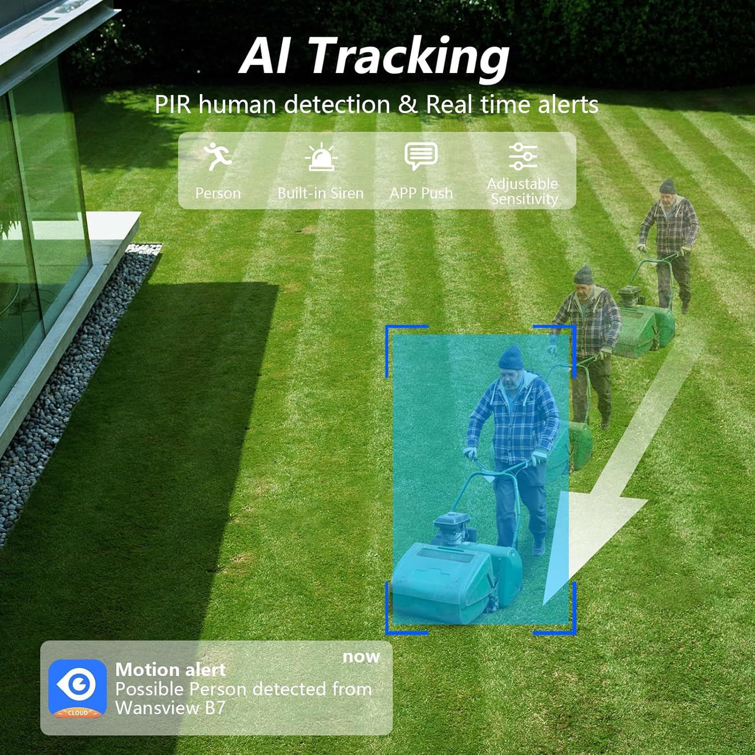 2K Dual-Lens Zoom & 3MP Clarity at 30 Feet: wansview security cameras wireless outdoor deliver crisp 2K images with dual lenses—3.6mm wide-angle for broad views of your yard or driveway, and 8mm telephoto for detailed close-ups of visitors or packages. With 64x digital zoom, the solar security cameras wireless outdoor clearly identifies people approaching your house up to 30 feet away, ensures no detail is missed. Day or night, enjoy top-notch surveillance & security for your home.