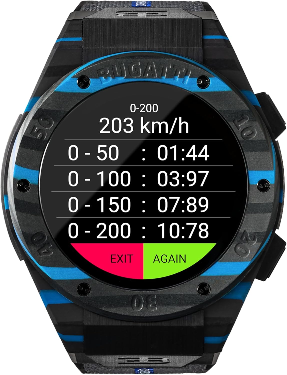 The Bugatti Carbone Limited Edition features a crystal AMOLED display covered by practically unscratchable sapphire crystal.