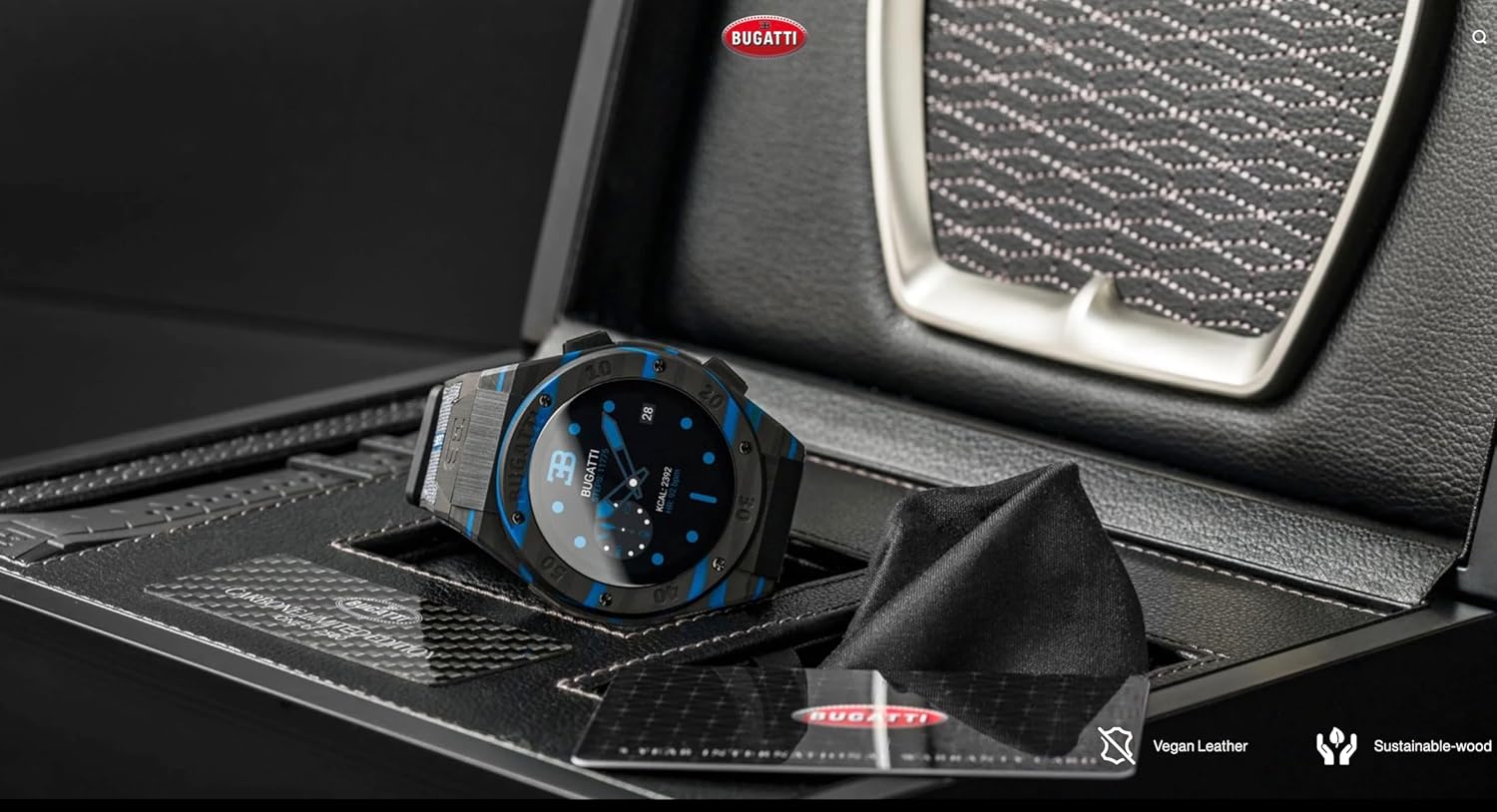 Wearable4U Bugatti Carbone Watch for Men, Limited Edition, 46 mm AMOLED Display, Water-Resistant Smartwatch