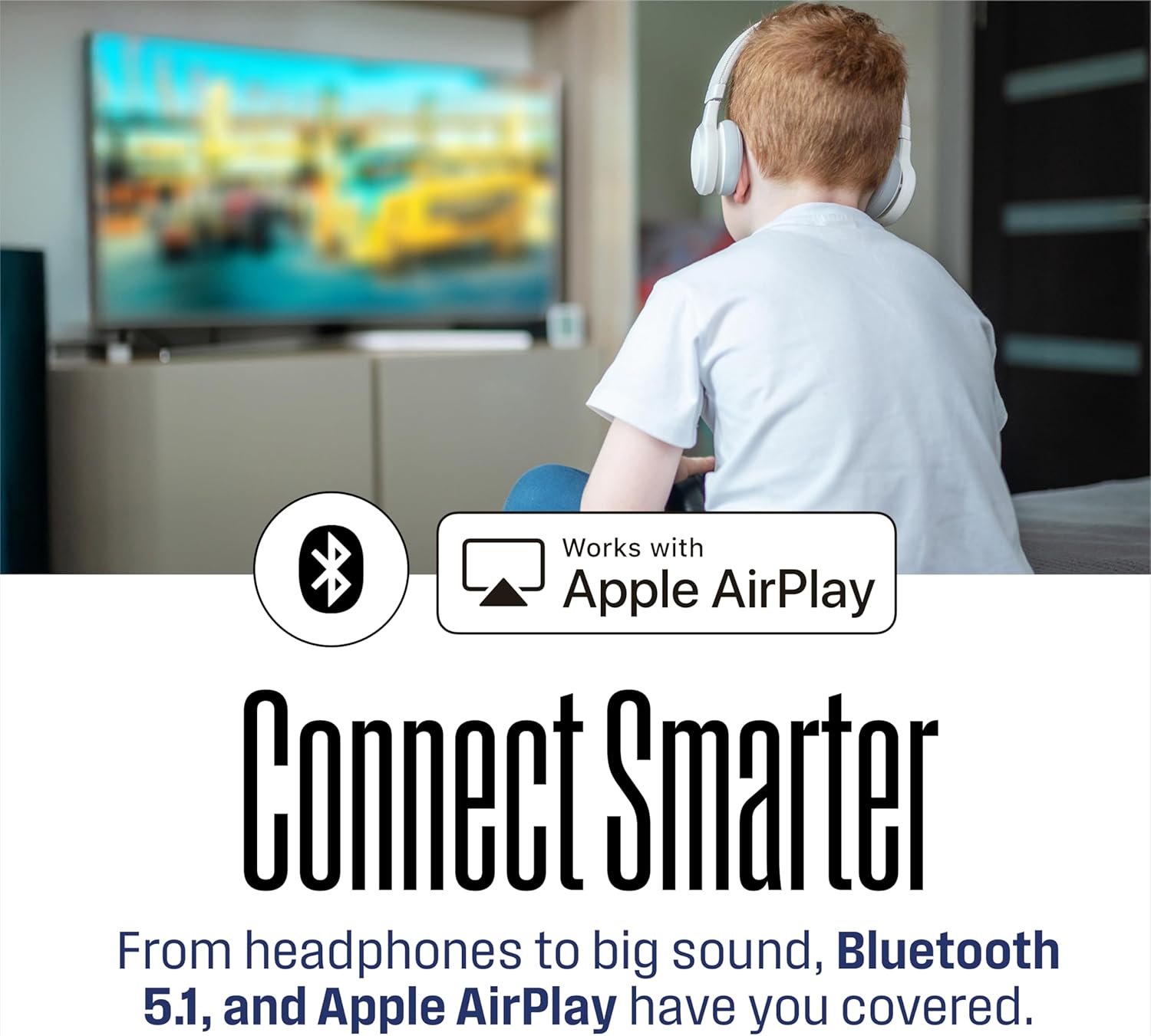More ways to play and connect – Stream or mirror content directly from your iPhone, iPad, or Mac with Apple AirPlay. Enjoy music, view photos, or surf the web on the big screen with ease. Built-in WiFi allows you to connect to the internet wirelessly — no need for a hardwired connection or external service box. Plus, built-in Bluetooth lets you wirelessly pair soundbars, headphones, or speakers for immersive, high-quality audio—no messy cables or setup required.