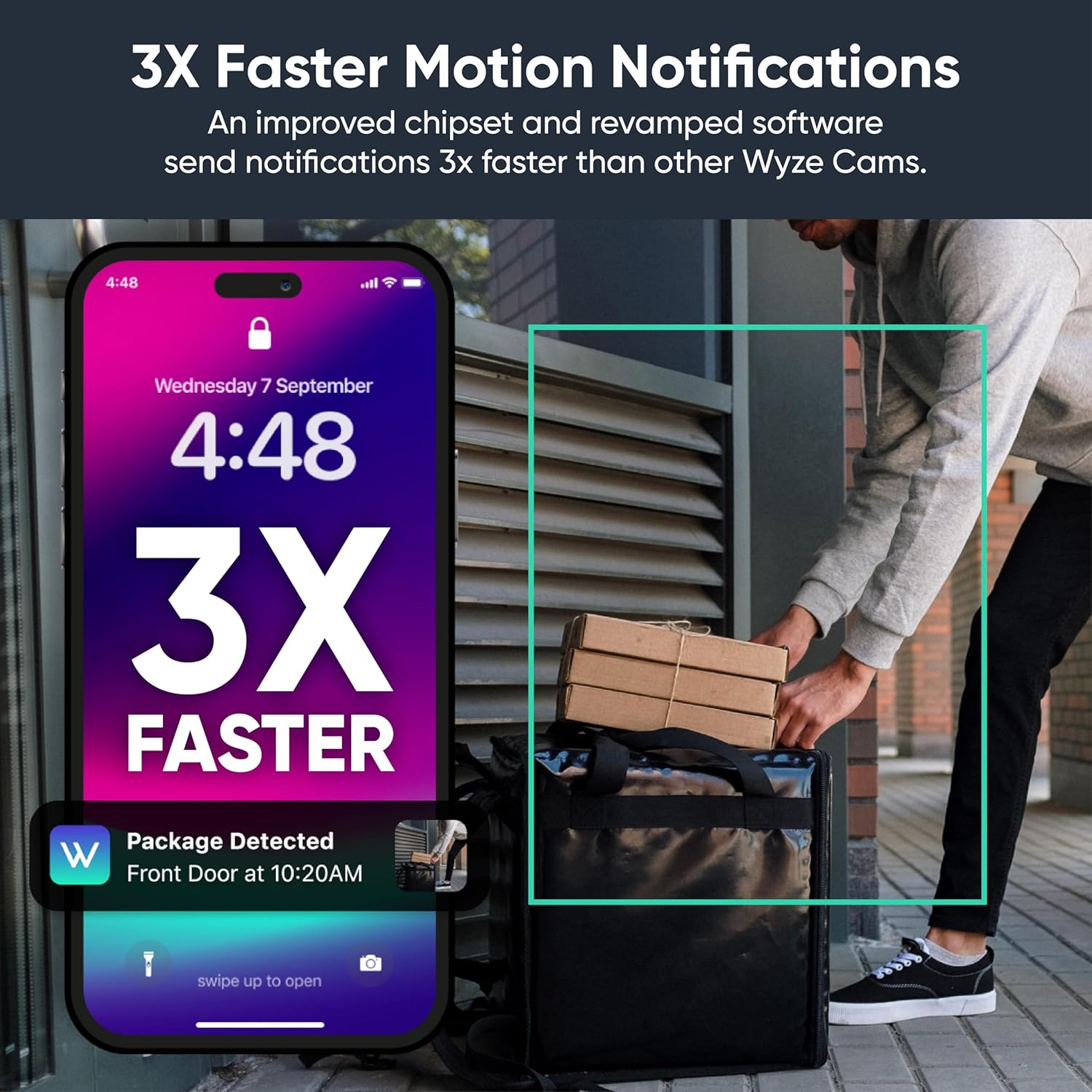 Instant Motion and Sound Alerts – Stay informed with instant notifications sent to the Wyze app whenever it detects motion or sound. You can adjust sensitivity with Motion Detection Zones or easily turn off notifications whenever needed.