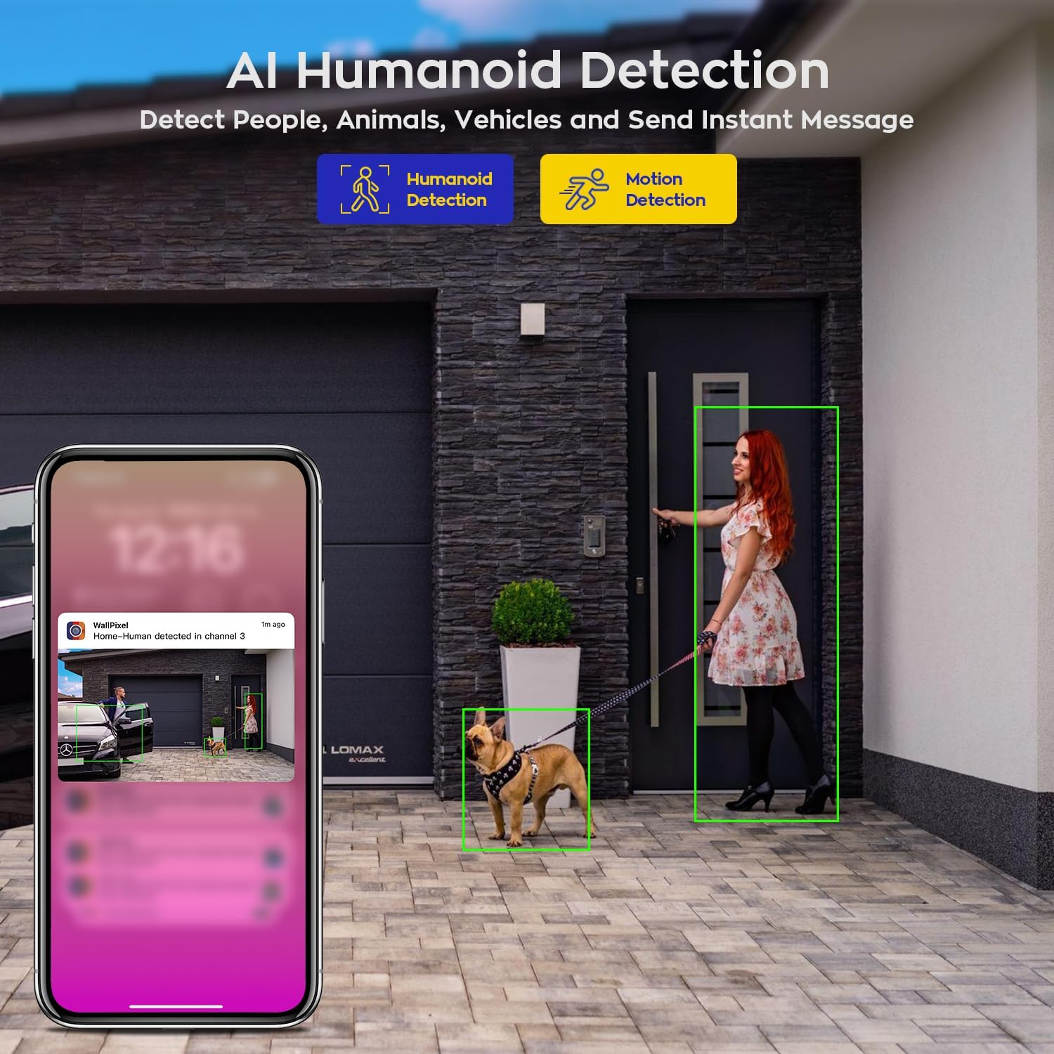 Detect, record human, animals, vehicles and send instant App messages. Reduce false alerts.
