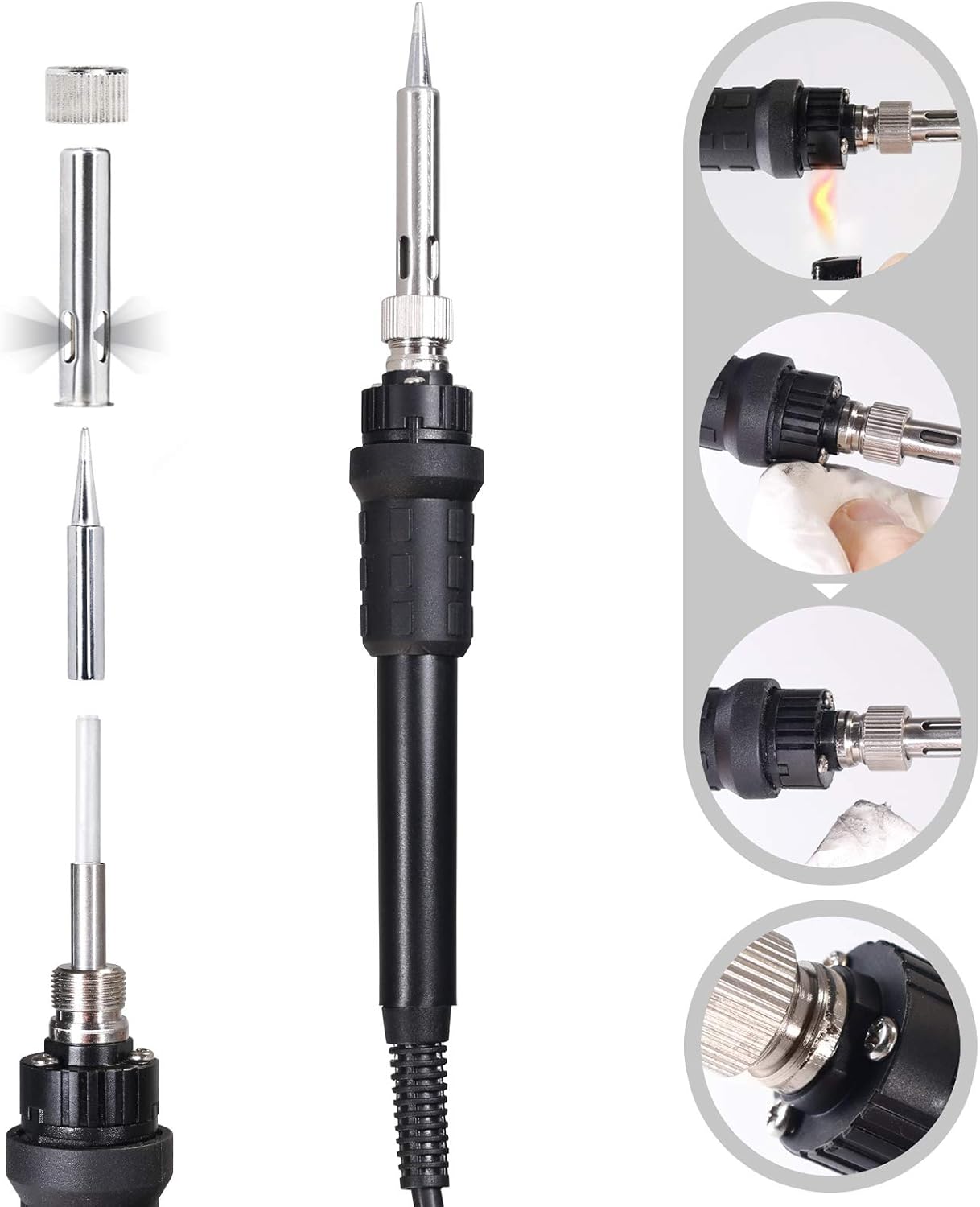 Fast Heating Up & Adjustable Accurate Temperature – This digital soldering station provides fast heating up and wider heat settings (194℉~896℉/90°C ~ 480°C) to choose from. Can consistently hold the current temperature with its advanced temperature control and tackle more tasks. Comply with UL Standard(U.S.), Important Evaluation for Safety Electric Appliances.