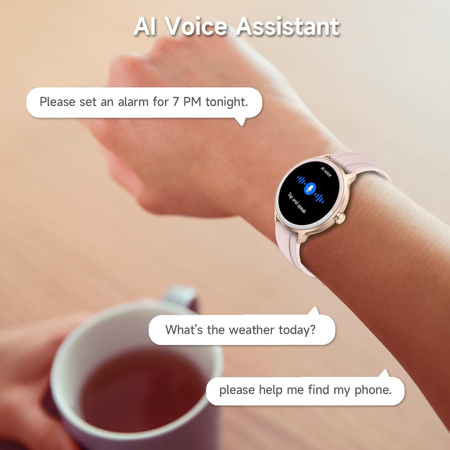 [Bluetooth call & AI voice Assistant] The android ios smartwatch women men Connect with the phone through Bluetooth 5.3 and app, with a built-in microphone and speaker. You can easily use this smart watch to answer/make calls, store contacts, check call logs, and receive notifications and messages from various applications on your phone. Built-in AI voice assistant, you can ask questions, control music playback, check the weather, set alarms and timers, etc. by speaking to the watch.