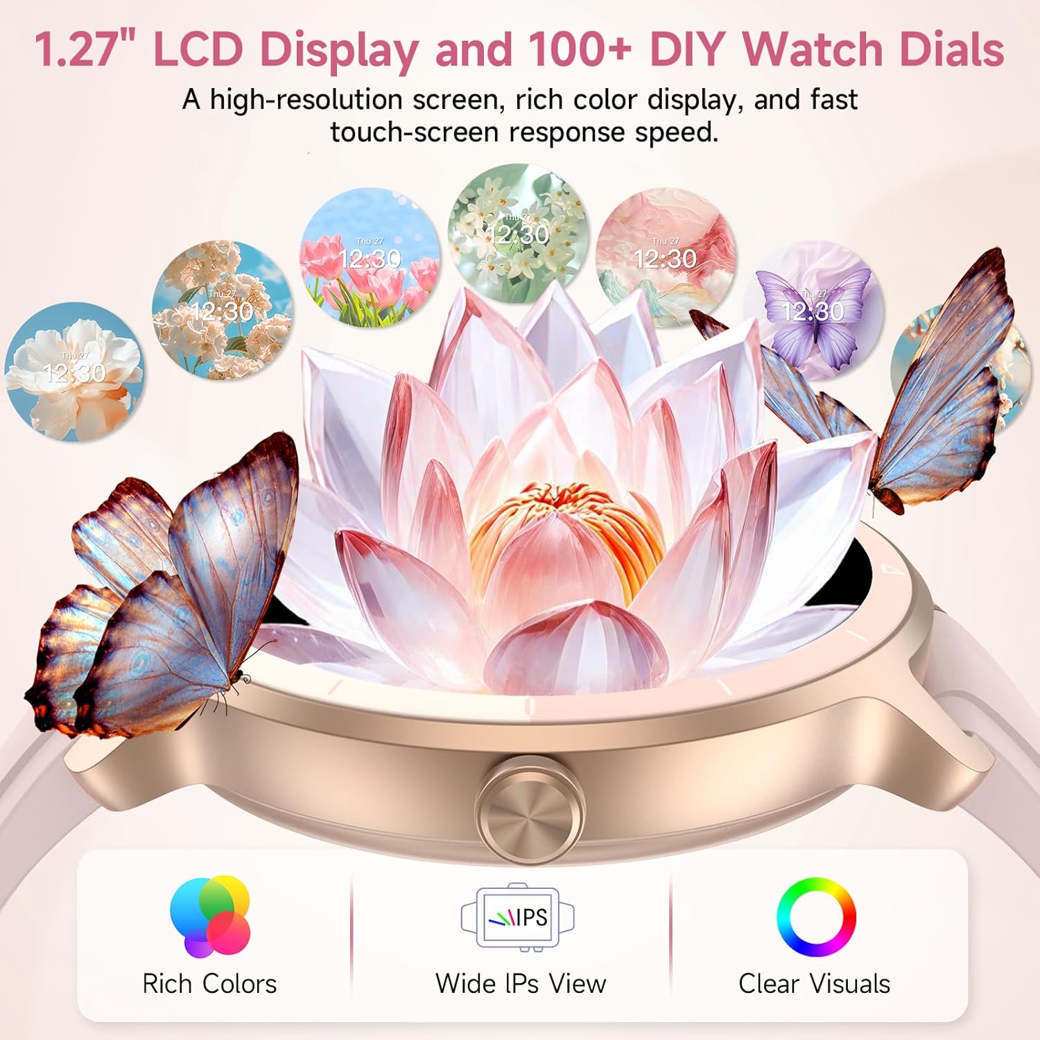 [1.27-inch HD Screen & Customizable Watch Faces]: Smartwatch for Android iOS phones is equipped with a 1.27-inch HD screen. Supports hand-swiping and has 100 beautiful cloud watch faces. Making the smartwatch for men women more stylish and durable. Change the watch face through the ‘veryfit’ app, or long press the screen directly to access the switching options, and even upload your own photos from your phone, such as selfies or photos of pets to the smartwatch to create a truly personalized look.
