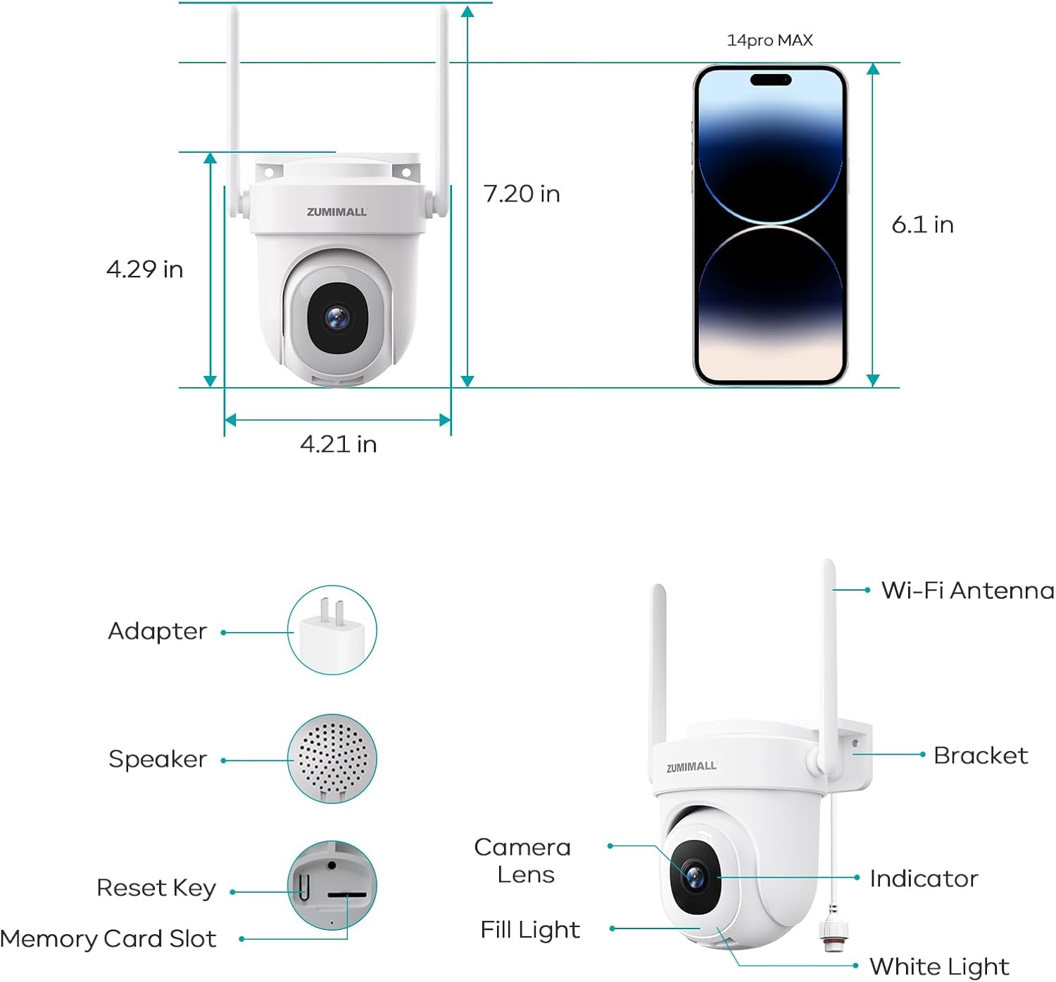 【2.4/5 GHz Wi-Fi and Multi-Function】This outdoor 5G security camera supports dual-band Wi-Fi for enhanced connectivity; manage your outdoor security system, share live streams, and use real-time two-way audio easily via the ZUMIMALL APP